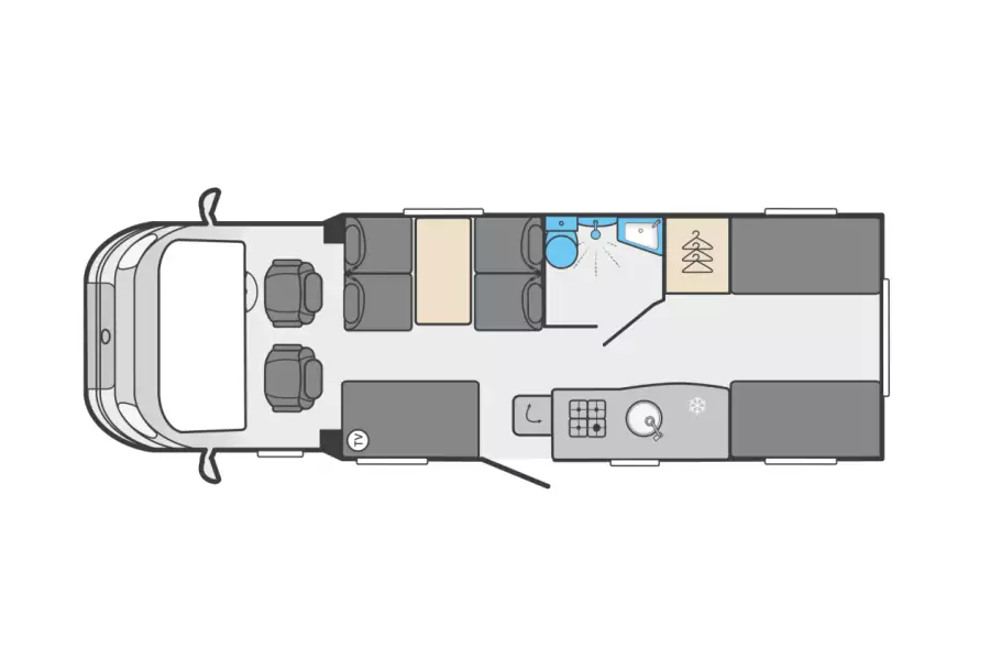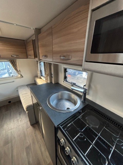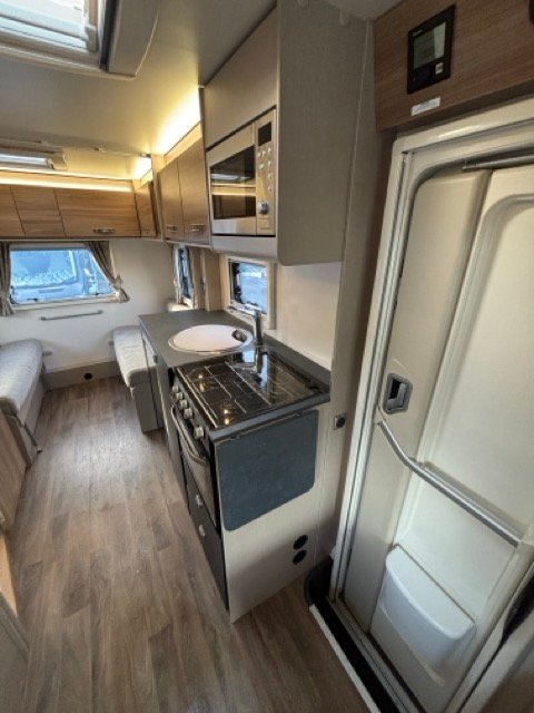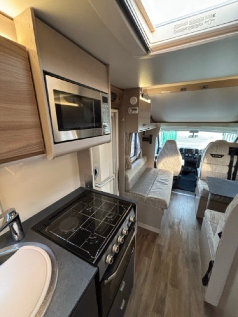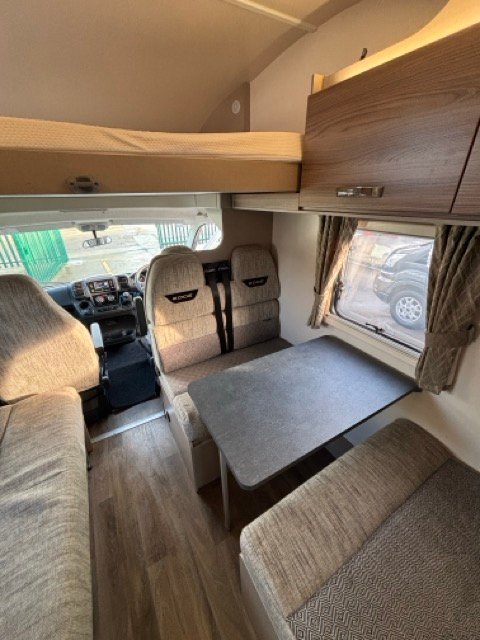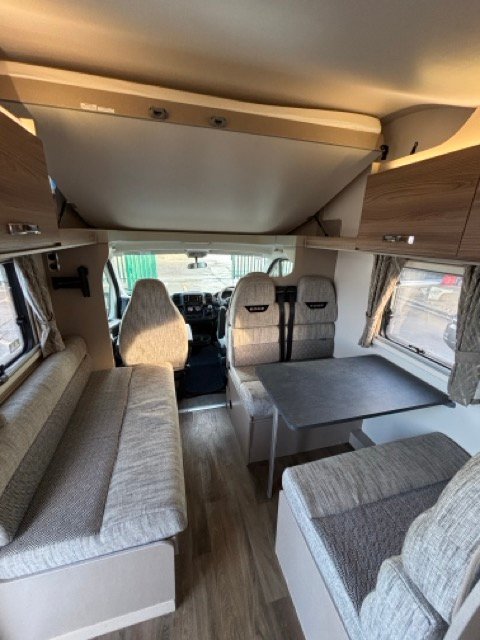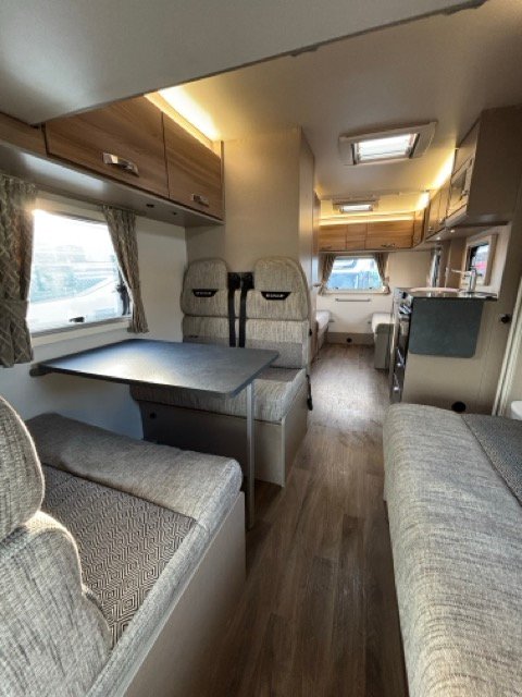 The 486 features a desirable layout with 3 double beds, end lounge, and a dinette that easily converts into a double bed. This means it comfortably accommodates up to 6 people, making it ideal for weekend getaways or extended holidays. This motorhome boasts a high standard specification as you’d expect from Swift including TV aerial, microwave, Truma Combi heating & hot water system. Powered by the latest Euro6 diesel engine and equipped with a manual gearbox.